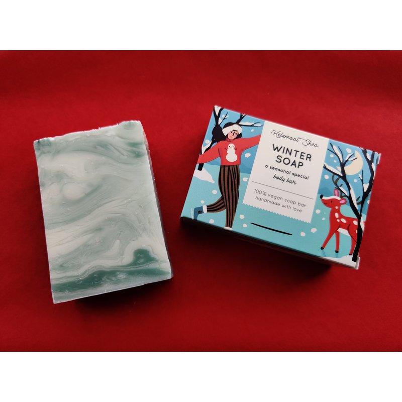 Seizoensspecial – Winter zeep, handgemaakte en natuurlijke pepermuntzeep met de frisse muntgeur van etherische pepermuntolie. Het verkoelt, verheldert en verfrist de vermoeide huid.